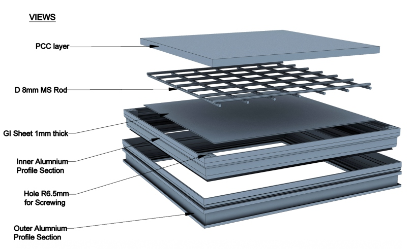 | Load Capacity | Over 86.0 KN (600x600mm) with PCC filled up to 50 mm (without 20mm stone) |