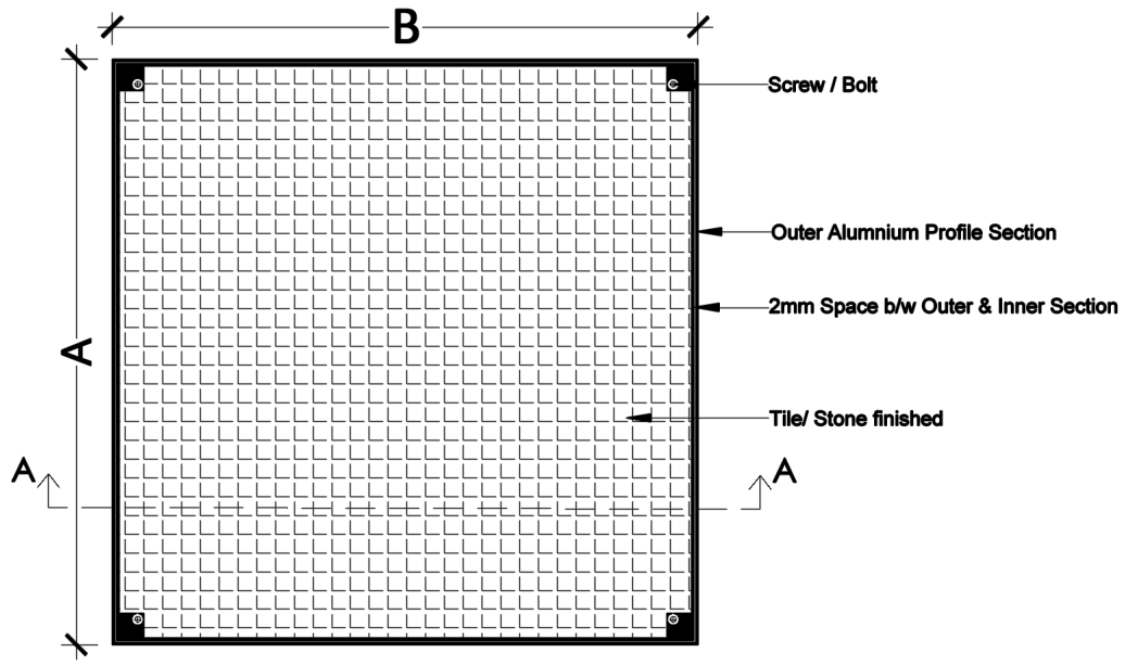 The cover comes with allen key system which not only makes it easier to open the bolts but also acts as a handle by screwing into the same space and stilts up the cover for easy manhole access. All our manhole covers are clear anodize coated for extremely good durability and unlike traditional manhole covers, does not rust, or get jammed due to the special throw-out rubber system. Metaveil Manhole covers are the perfect choice for areas where an aesthetically pleasing inspection cover is required. The recessed top allows tiles or stone to be installed blending in with the floor pattern.